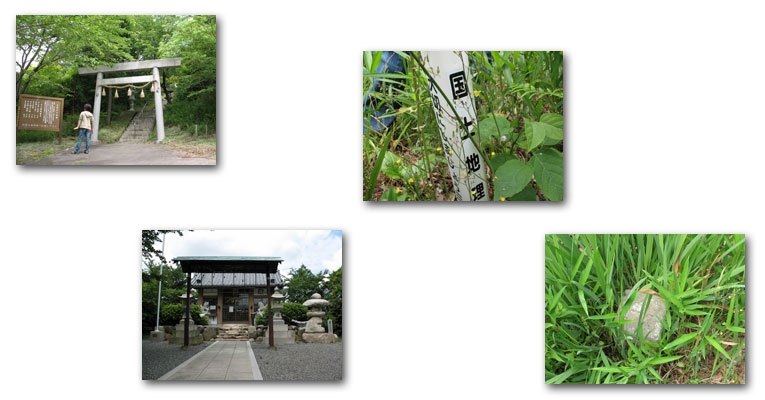 巌島神社(いつくしま?)の高台が山頂かと思いましたが、実際には、道路沿いを更に北に進み、道路から入った場所に点がありました。神社からは、かすかに木々の間から町並みを望むことが出来ますが、点のある場所は薮の中でした。