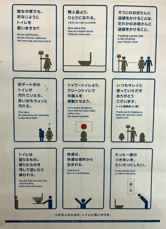 「つぎの人のためにトイレに思いやりを。」の掲示が良いと思いました。