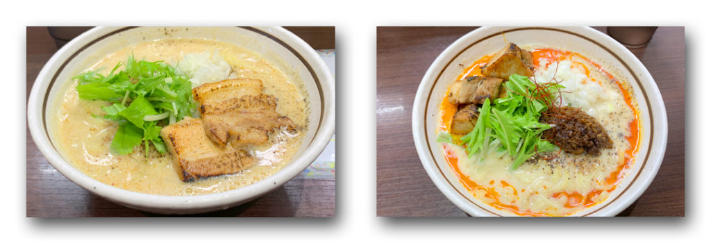 注文したのは、「濃厚担々麺」と「クリーミーごまラーメン」、共に900円です。さらに、「ど肉370円」をトッピングしましたが、これがなければ量的に少し物足りなかったかもしれません。